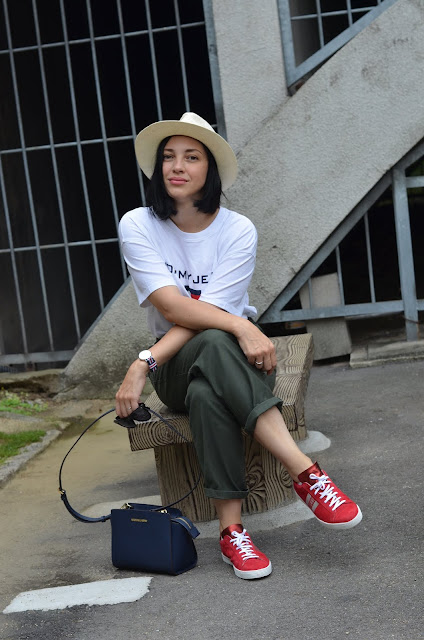 Ох Елена, спасибо за идеи. Вот прям думала что со своими брюками хаки делать. Жду как раз футболку белую с принтом надписью красного цвета. Добавлю туфли красные лаковые на танкетке, а то зря стоят 2 год уже