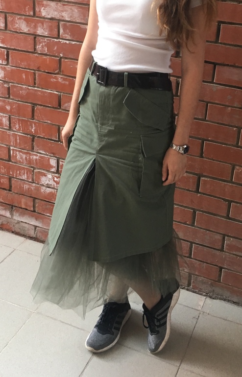 Азиатский shoppingИнтересная юбка сочетания милитари и нежности)