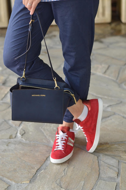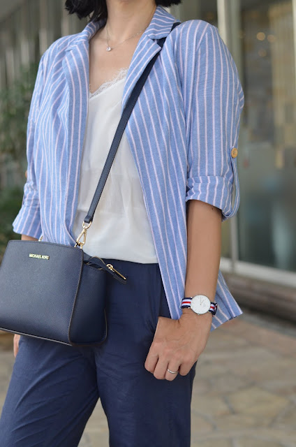 Мне кажется, сумка, кеды и часы прекрасно подружились и жакет вписался в их компанию.