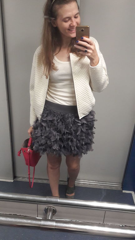 Очень давно и очень сильно я хотела пернатую юбку. Запомнилисть три, которые прям понравились-понравились. Одна, правда стоила 45 тысяч, вторая - розовая была порвана, и третью я, наконец, купила.