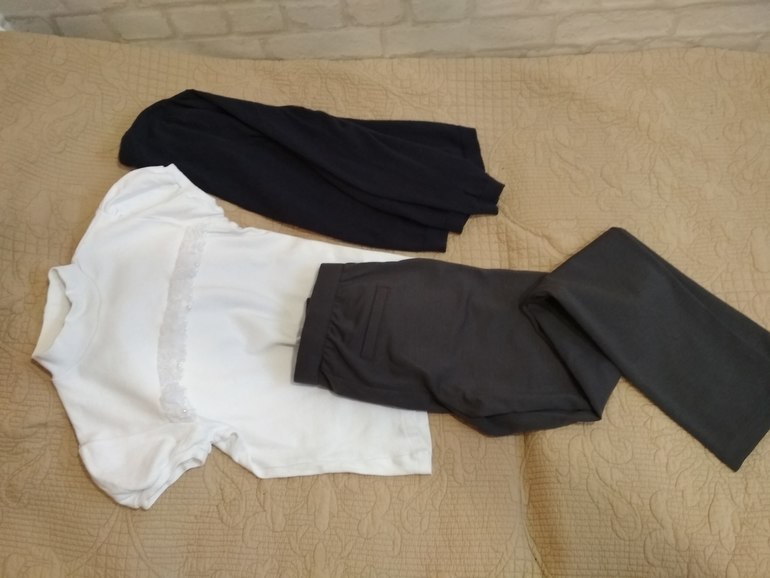 Нужно докупить одну-две красивые блузки на торжественный случай. На повседневку обожаю трикотажные с жабо (3 штуки на год), только с коротким рукавом. Длинные рукава вечно грязные и гладить сложно. Одевать на них кофту неудобно. Плюс у нас жарко в школе.