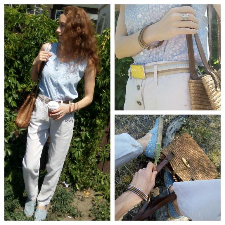 Ну и недавнее приобретение, широкие брюки на кулиске. Тоже, естественно, льняные)