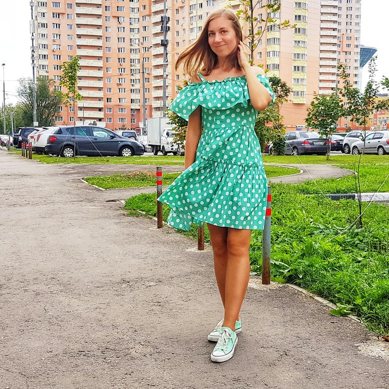 Многим не нравится, когда носят платье с кедами, а я прям обожаю, это очень удобно.