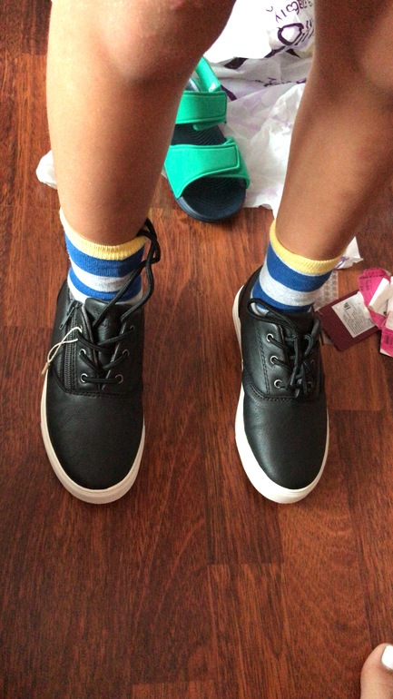 Мы похожие мерили, правда мокасины, но тоже чёрная кожа с белой подошвой. Очень стильно смотрелись! Это кожа? Я всегда опасалась брать обувь из искусственных материалов, а сейчас понимаю, что, наверное, зря. Растет быстро, а качество кожзама сейчас нормальное.