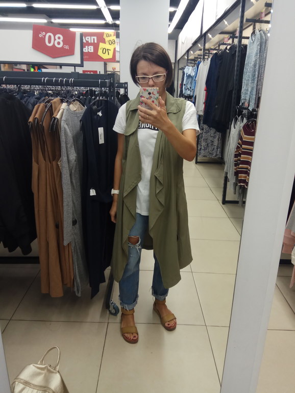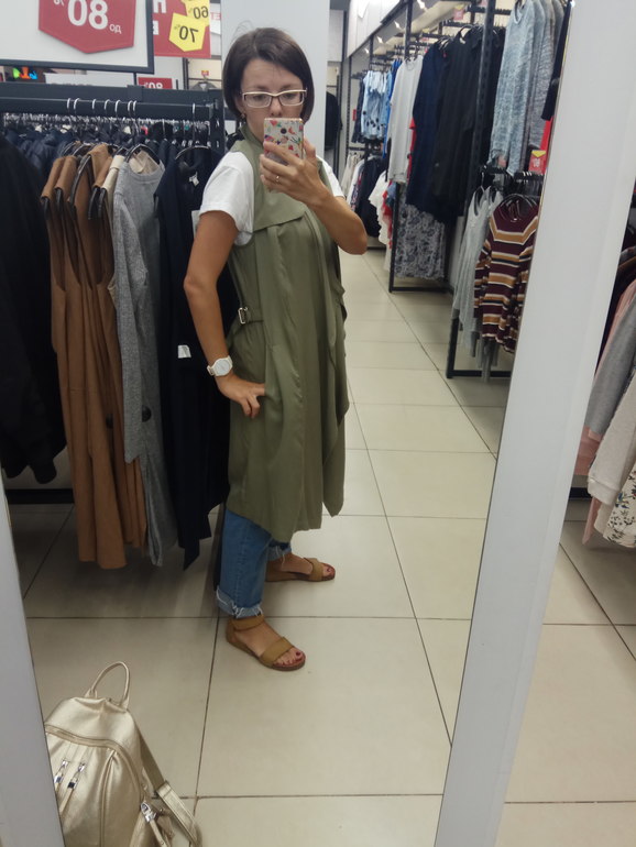 ПримерочнаяФото из примерочной. Как раз на лето моссковское)) Купила. Муж дома обозвал плащ палаткой)) Хочу носить с брюками скинни и футболками. Или не женственно? Ваше мнение, девочки? КТО ЗА СДАТЬ, АРГУМЕНТИРУЙТЕ)))