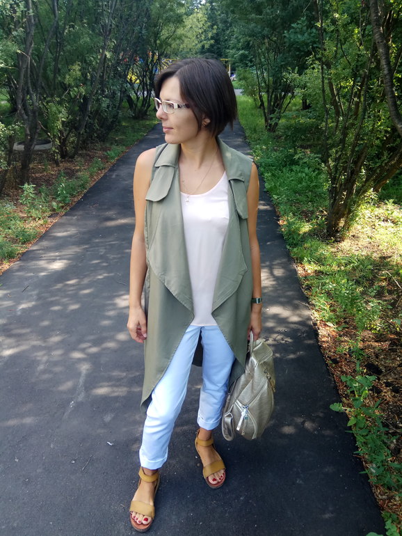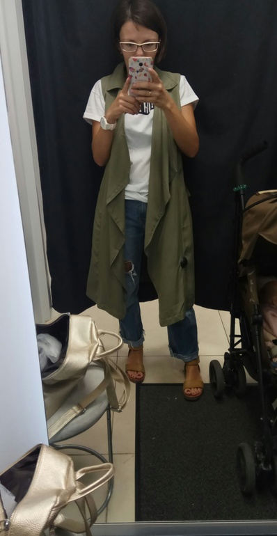 Я бы сдала, во-первых не нравится мужу, кгда у меня так случается я тупо эту вещь потом не ношу. Во-вторых выглядит как дешевая тряпочка, я люблю более держащие форму из натуральных тканей. Недавно кстати видела в массимо белый жилет с поясом из-зо льна и девочки тут его показывали. Вот он крутой. Но это мое мнение. Извините если вдруг обидела .