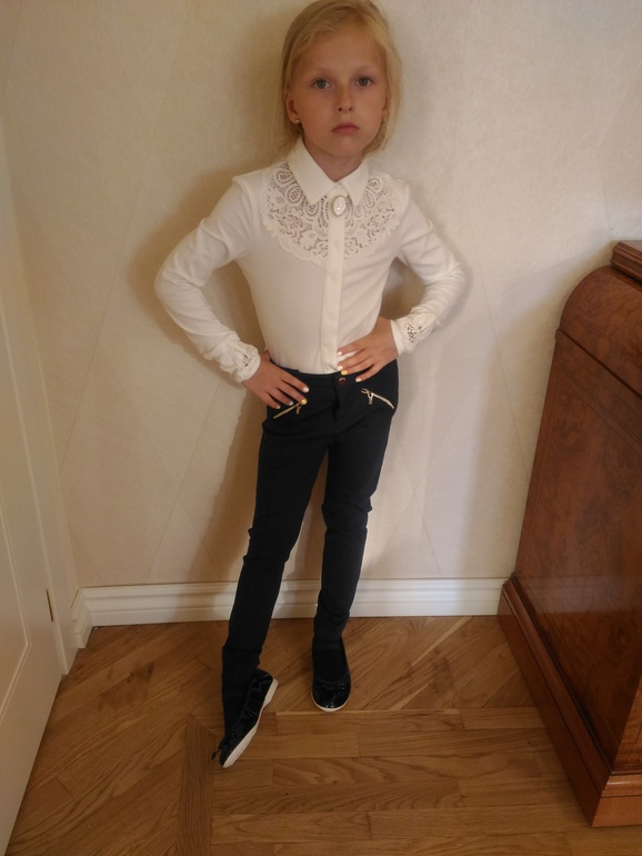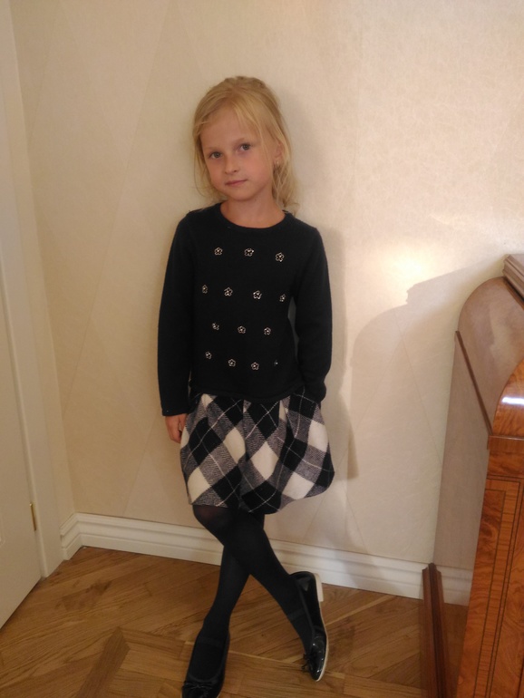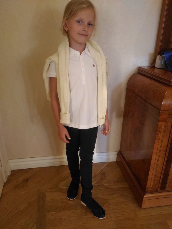 Все красиво и со вкусом, как обычно))). Три года назад дочь была в таких же параметрах))) когда пошла в первый класс и даже размер обуви - геох моей не подходит по подъему, нашли в camper хорошие, и сейчас тифлани тоже нравятся, 3 класс размер 31.5))))) и узкая нога...одежду тоже беру в маленькой леди...