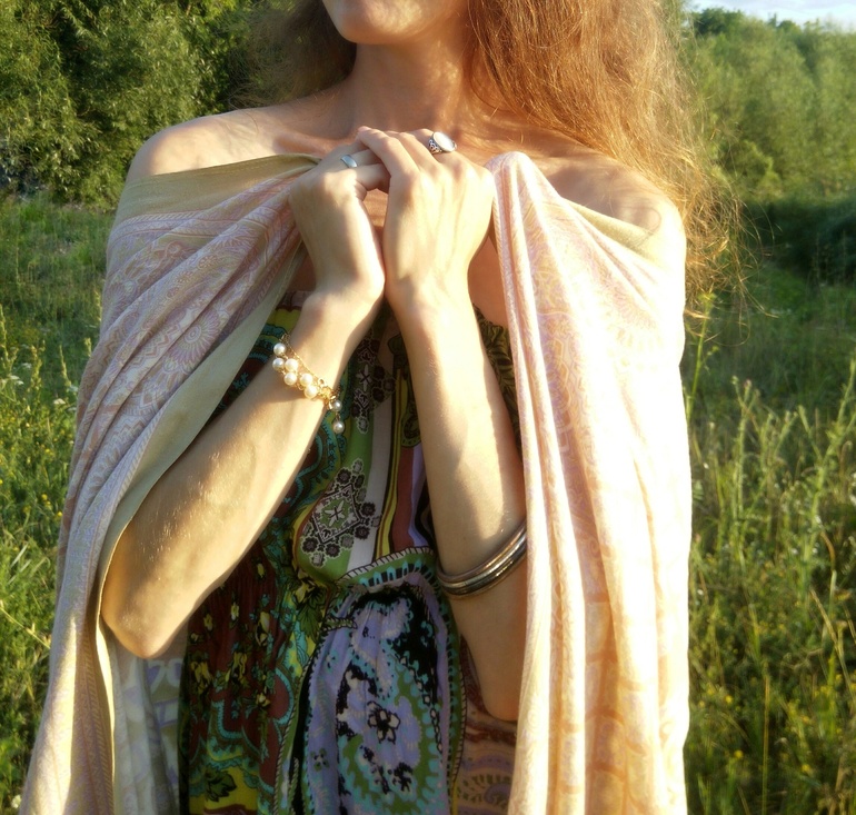 Научну с этой вещицы. Это палантин, 100% шелк. Расцветка и узор его меня покорили.