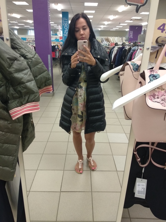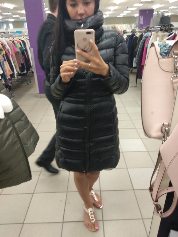 Примерила пуховик трусарди джинс, который на сайте бутик.ру представлен за 20 тысяч рублей ( 40 тысяч перечеркнуто), купила его за 6900 с 7проц скидкой в честь понедельника), а так 7490 стоит, размер 40 российский (38 итальянский), остался ещё такой на размер больше. Также есть и другой пуховик с капюшоном и ремнем и ещё нечто непонятное ( см ниже )