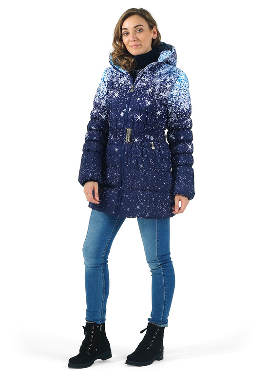 У куртки основной тон-глубокий тёмно-синий. Носить его у лица в однотонность варианте я избегаю, т.к он проявляет синяки под глазами и носогубки и делает из меня больную уставшую панду. Но здесь он разбавлен белым и вкраплениями бирюзового, и все вроде становится не так страшно. Но меня смущает один момент: сейчас я загорела на солнышке и кожа без голубого оттенка, а зимой эта голубизна может проявиться.