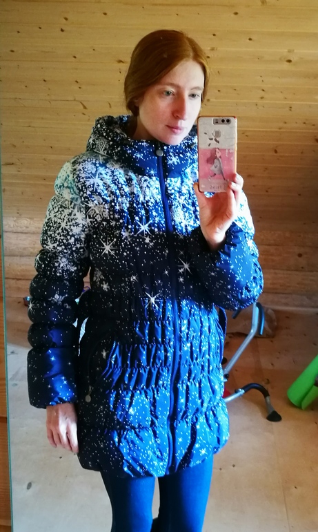 Девочки, всем привет! Купила куртку на зиму. Очень понравилась расцветка-новогодняя такая. Но возник вопрос по основному цвету. В примерочной было очень темно, так что я поняла только, что на фигуре сидит нормально, а как мне эта расцветка, не поняла вообще. Куртка была в единственном экземпляре и по очень вкусной распродажной цене, так что я взяла ее домой подумать, чтоб уже окончательно решить, оставлять ее, или нет.