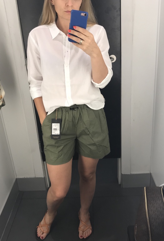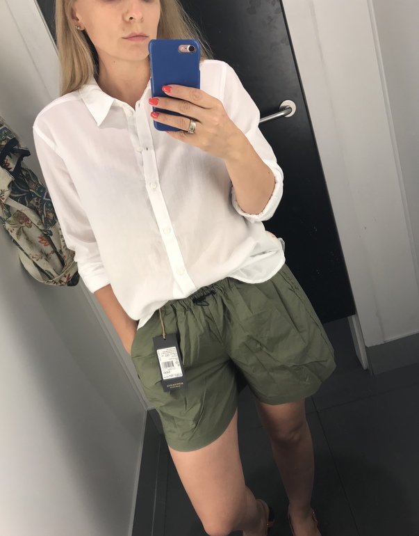 ОдеждаВчера были куплены шорты (на фото), шорты именно то, что я искала с самого начала лета. В них все сложилось идеально на мой взгляд, и цвет и ткань и форма... и сразу же сложился образ, с белой рубашкой, которой ещё не было... Именно свободной формы, чуть удлиненной, хорошей ткани и силуэта... хотелось - немного расслабленный образ для работы и каждодневной беготни. И я пошла искать))))