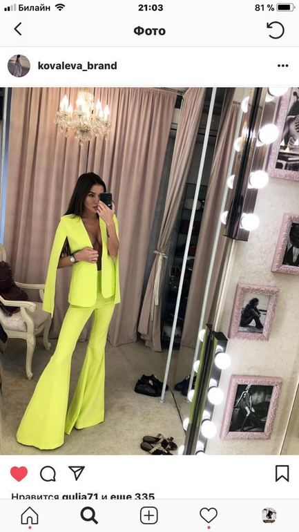 Мне не нравится, цвет через чур едкий, брюки слишком расклешенные. На Вашу фигуру можно найти варианты гораздо достойнее.