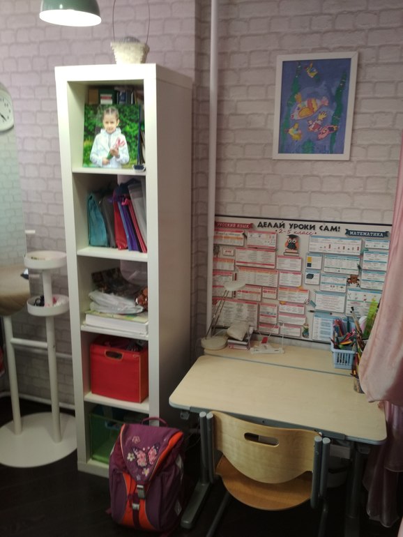 Парта Kids Youth. Она дороже чем Дэми, и разница есть. Покрытие хоть и светлое, но абсолютно как новое за 2 года использования. Ну и в целом складывается ощущение более высокого качества в разных мелочах. Стул покупали в комплекте с партой. Регулируется высота стула и глубина сиденья (что тоже очень важно!). Он многим кажется страшным и громоздким. Поверьте, это лучший стул для осанки! При условии что парта растущая тоже.
