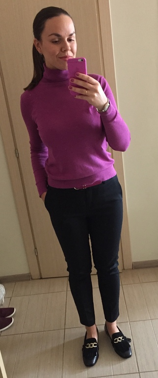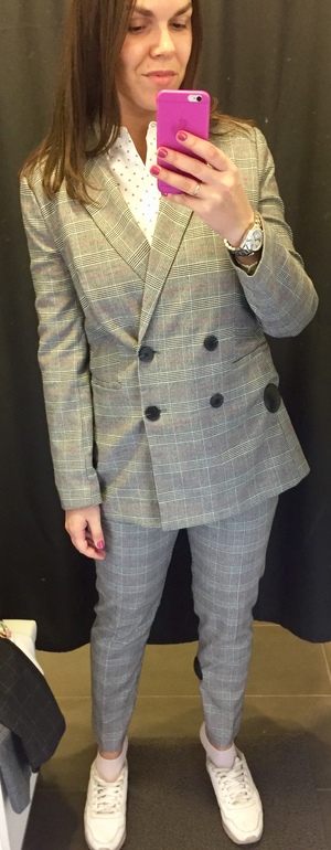 ПримерочнаяПримерила еще костюмчик. Думаю, надо брать, только пуговки чуть перешить, чтоб не тянуло. Носить планирую исключительно с кроссовками и лоферами) шпильке-нет!