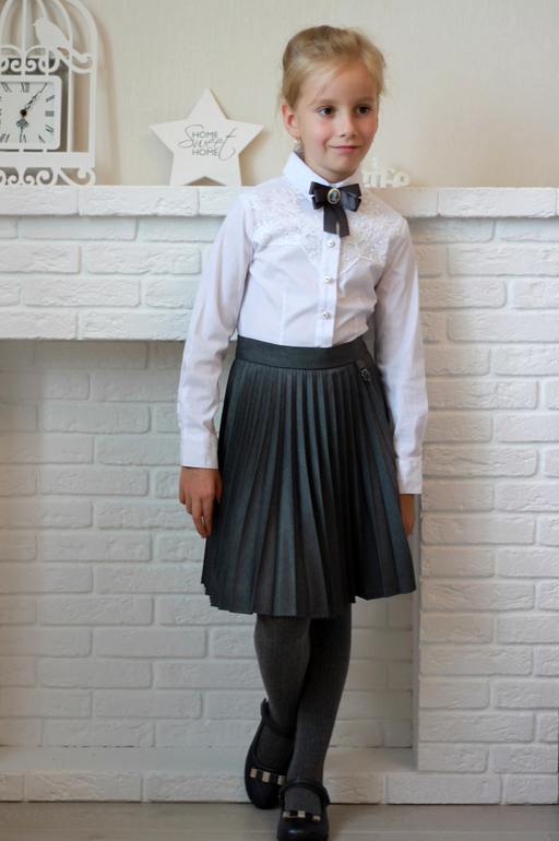 Цвет формы у нас серый, сначала немного приуныла, мне синий нравится больше. А как-то проходили мимо Сhoupette, взгляд остановился на юбочке в складку. Такие юбки - моя слабость, примерили и просто не смогли уйти без нее, в комплект еще жилетку взяли.