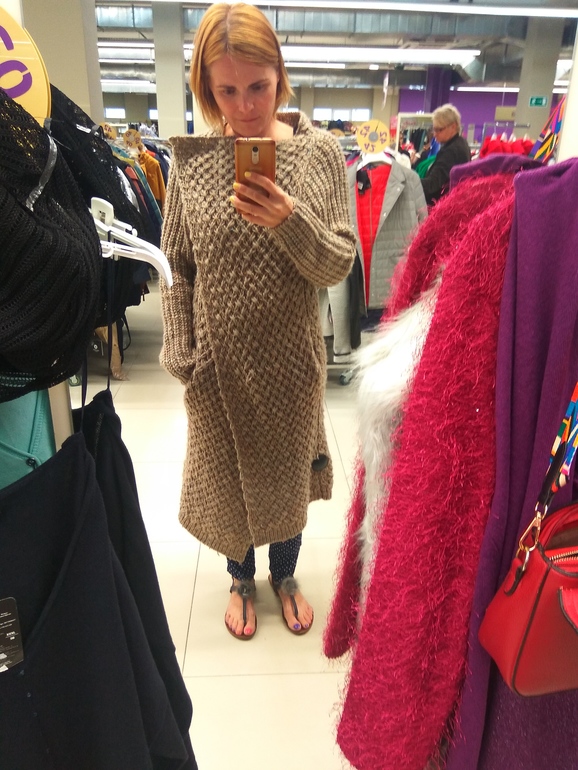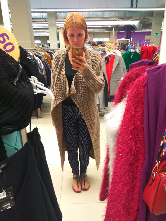 Кардиган этот безумно нравится, его купила. На пояс и к верху пришлю по пуговице, т.к. сейчас он не застегивается никак.