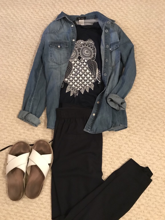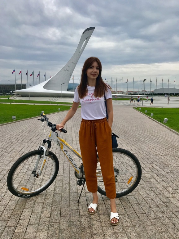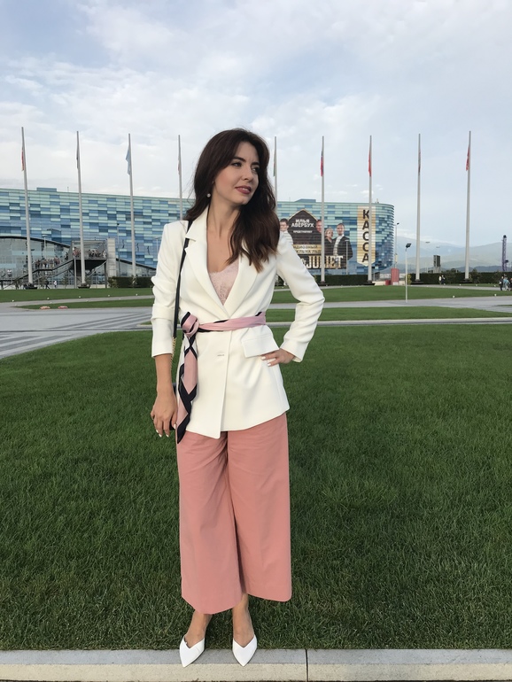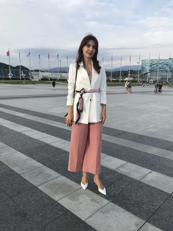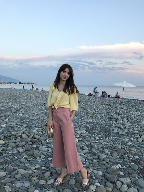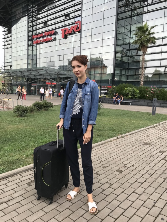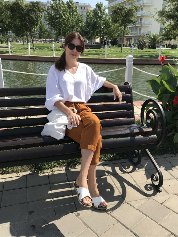 Далее день третий - ездили на Ласточке в Сочи, очень хотелось что-то интересное, но решила сделать выбор в пользу удобства, поэтому блуза и брюки лён и тапки.
