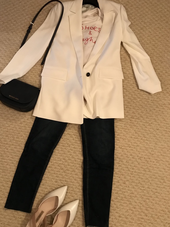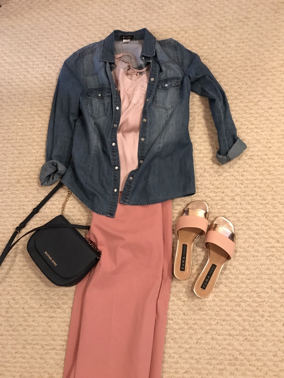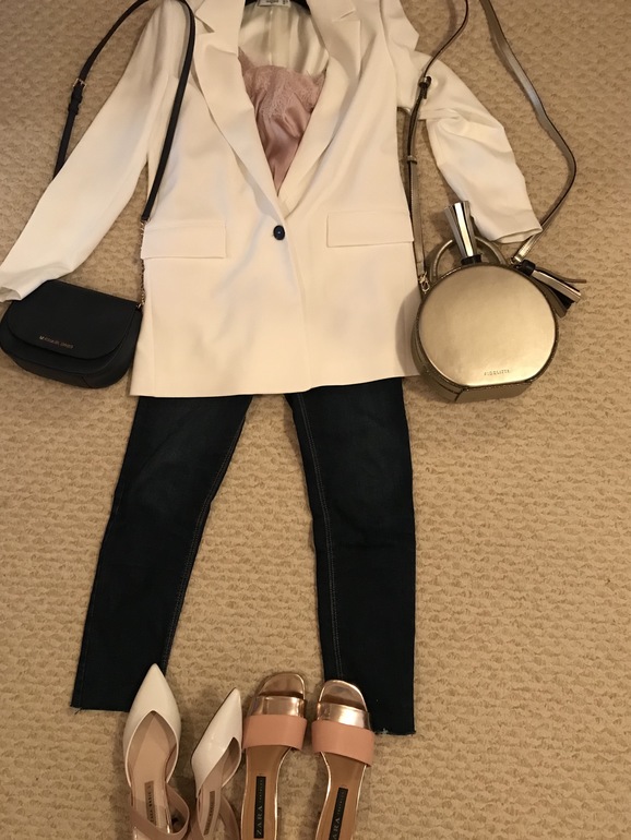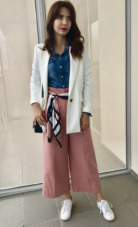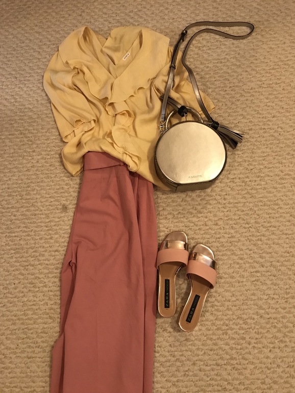 Потом решила вдруг добавить цветового разнообразия ))) и взять желтую блузу и сумку золото ))