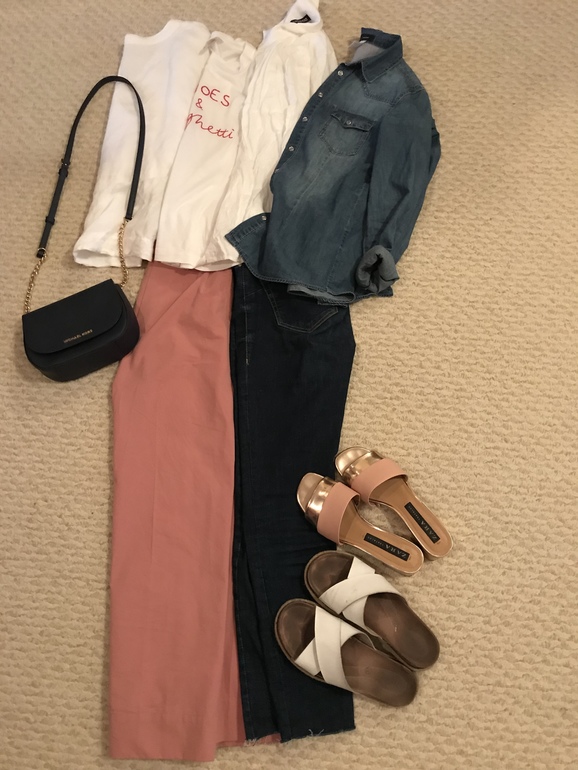 Все собрала, но мучалась сомнениями, что могу замерзнуть и в самом конце кинула белые кроссовки, синий жилет и коричневые брюки.