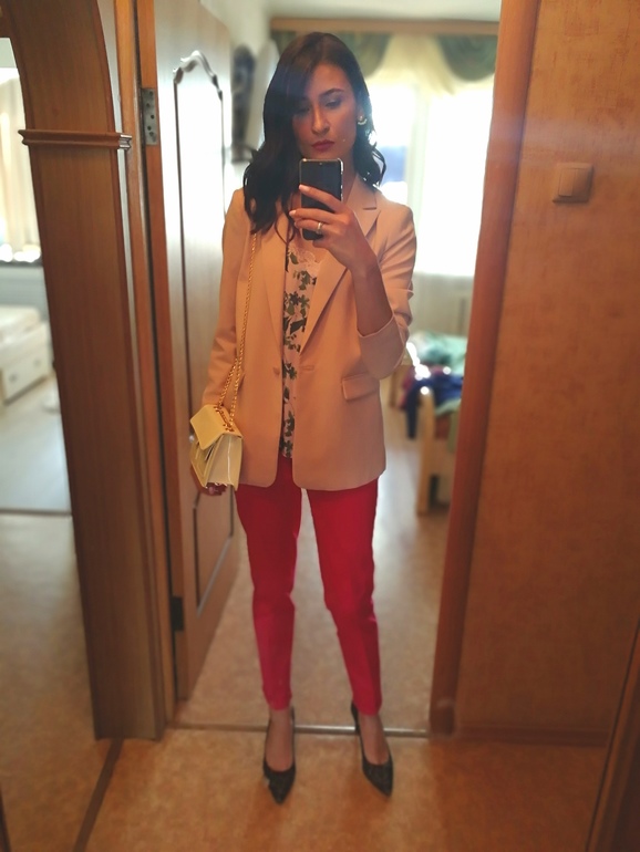 У меня было подобное сочетание цветов в образе.Правда обувь была не самая подходящая.