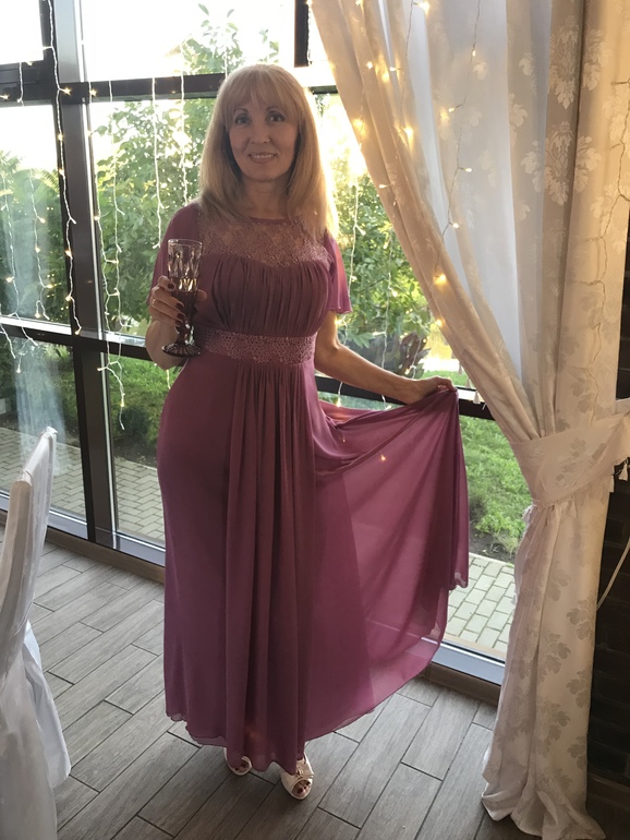 Мама не захотела ни серое, ни зеленое. Нашла у себя в городе другое, приближенное к цветам свадьбы и более удобное - легкий шифон, красиво струится и танцевать удобно.