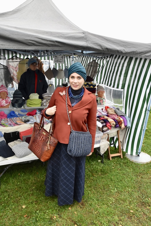 А вот на ярмарке примеряла вязаную сумку 😂 Хорошо, что попросила мужа сфоткать и увидела со стороны, что она мне совсем не идет! Не купила, конечно 😚 У меня три тюрбана из шерсти, ношу уже во всю!