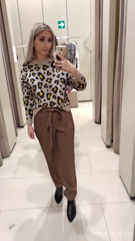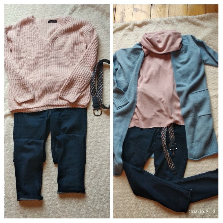 С желтым свитером не удобно было, да и носить мне это некуда. Пальто в принципе мне не особо было надо, хотя голубое не плохо в общем. С белыми ботинками и джинсами это мой кошмар. Джинсы момс ( или мамс) это вот как раз то что я не переношу на женщинах и сама не одену. Платье и коричневые брюки она как то сама в итоге отвергла.
