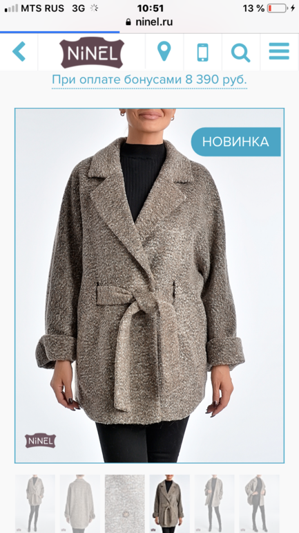 Насколько помню, вы полненькая? Это пальто с поясом только спереди, со спины он проходит под пальто, и получается сзади квадрат. При невысоком росте и полноте, вид будет не очень.