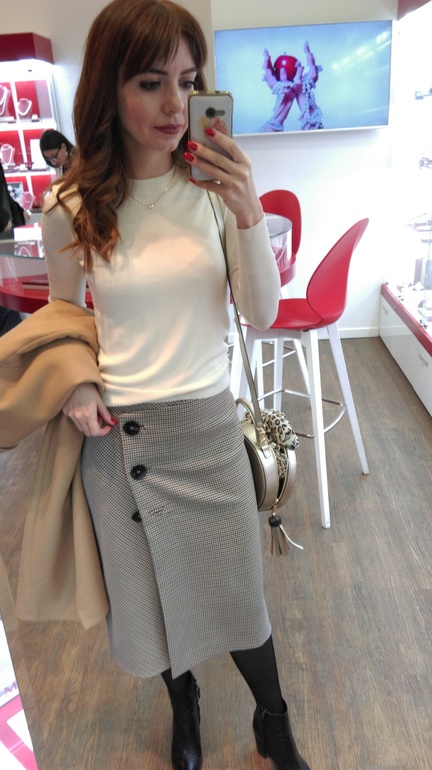 Образ 7. Современный микс принтов - с юбкой в клетку.