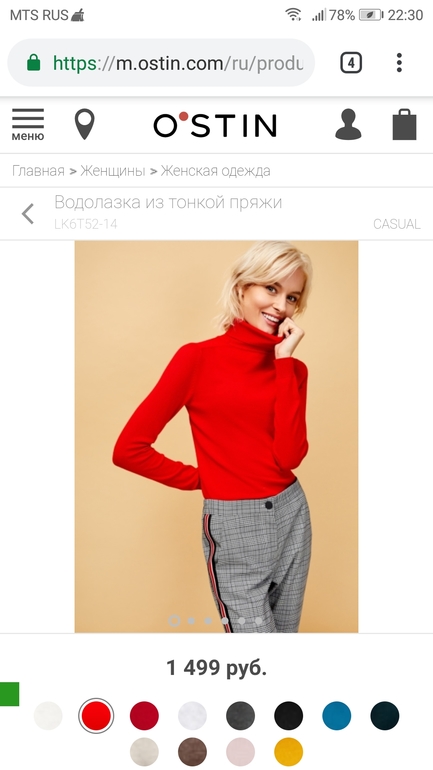 Я не идеальна, значит трикотаж плотный, плюс яркая. Забежал в Остин. Там акция 3=2. А как качество? Ношу на голое тело обычно. Вроде не колется. Скатываются?