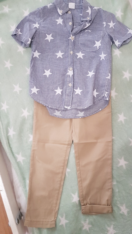 Оба варианта, синие практичнее, бежевые интереснее, особенно с рубашкой с динозаврами