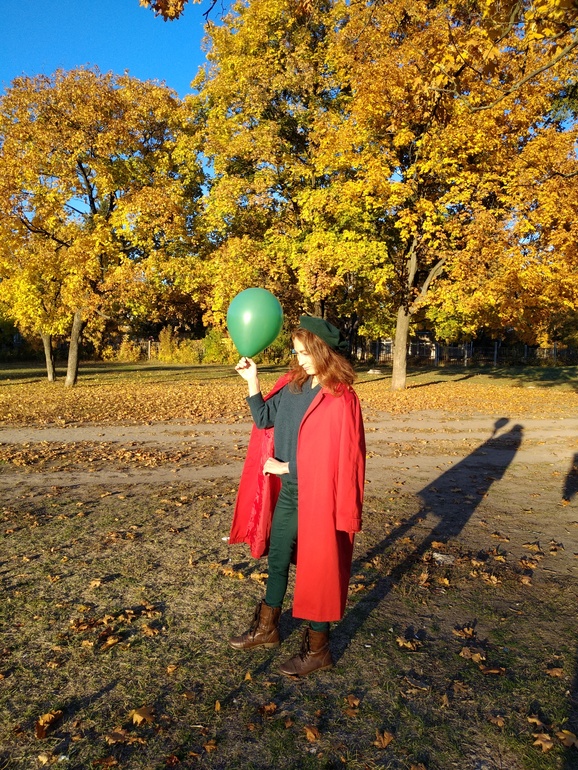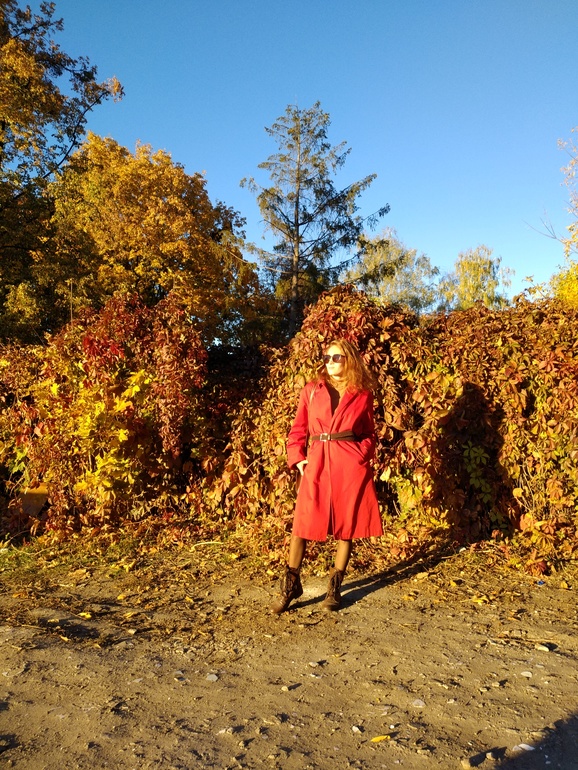 Это пальто я купила на весну, уже и не надеясь походить в нем этой осенью. Оно очень тоненькое, почти летнее. Но прошлая неделя радовала +20+24, поэтому пальто было выгуляно.