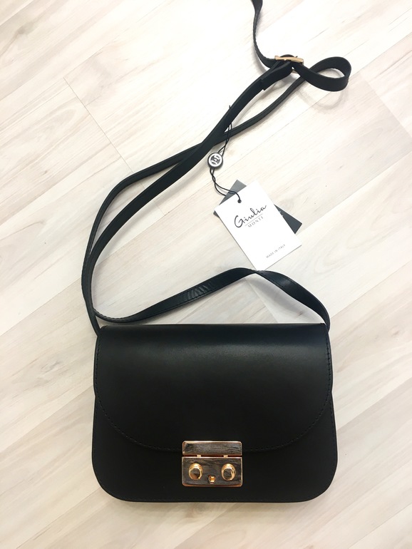 АксессуарыМожет кто помнит мои муки выбора классической чёрной кросс-боди. Девочки тут мне накидали много хороших вариантов, но мне нужна была сумка размером не меньше 20 см в ширину, а таких сумок мало. Нашла идеальную для себя, отзывов на неё не было, бренд представлен только на нескольких сайтах. Я так понимаю, сейчас этого бренда больше нет, а то что продают остатки. Бренд Giulia Monti, Италия. Сумка из натуральной кожи, на кожаной бирке на двух языках: английском и итальянском выбито «натуральная кожа», сделано в Италии. И вот она, моя красавица: