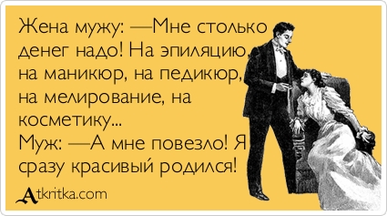 когда мне что-то надо, я всегда мужу восхищенно говорю: "как тебе повезло, что ты сразу красивый родился!!!" ему приятно, а мне выгодно :))