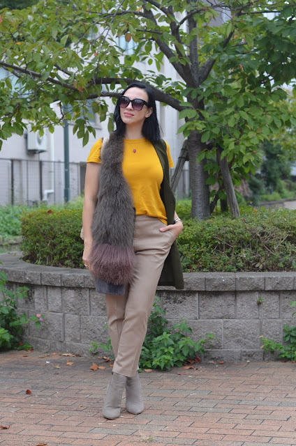 У нас чудесная теплая осень, самое время для моего мехового жилета, который я купила в прошлом году.