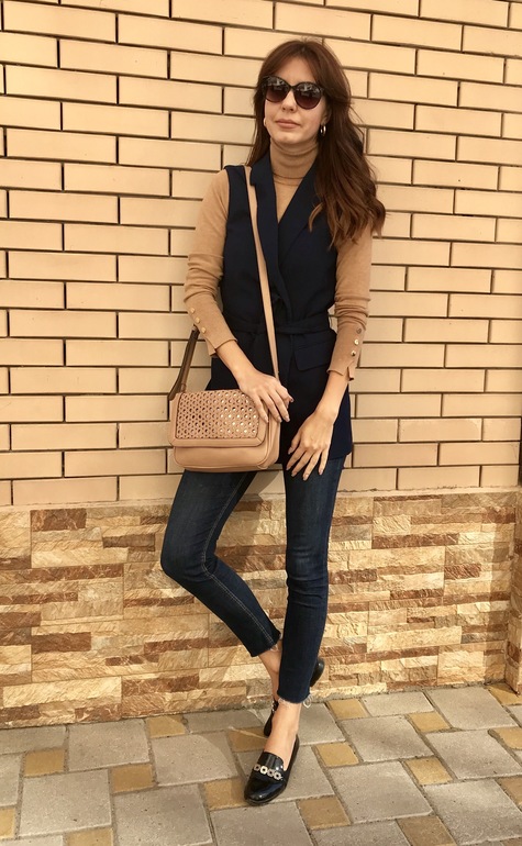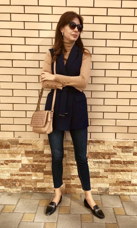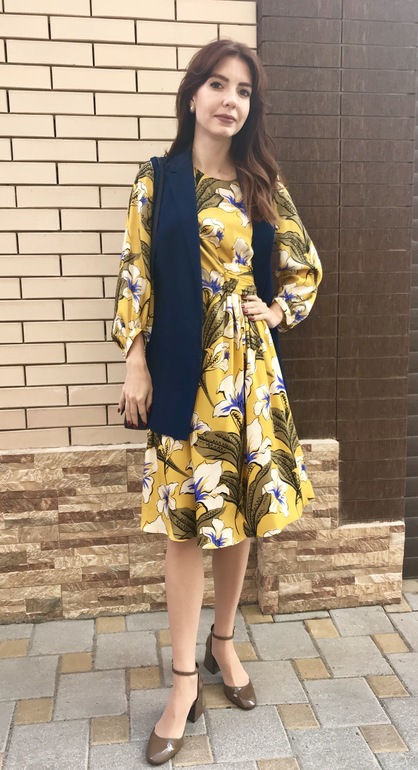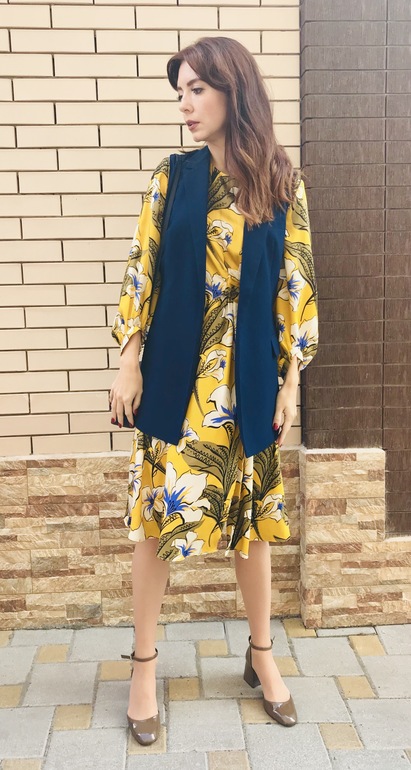 Самая стильная!Был у меня как-то пост про темно-синий жилет. Предлагала в нем вариант с жёлтым платьем, помню многим понравился и просили показать на себе )