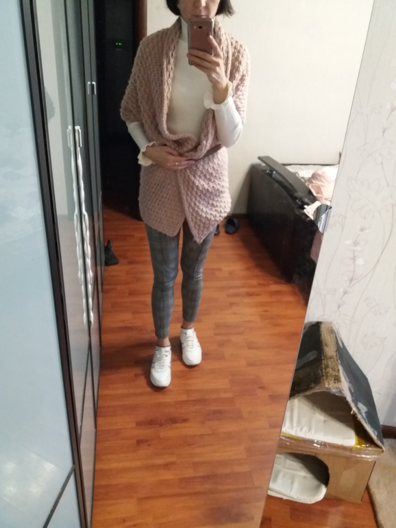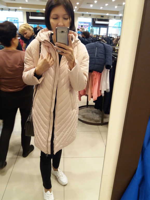 Ну так это не прям розовый, а кремовый какой то. С кроссами, с шапкой вязаной. Можно шарф накрутить, можно снуд. И рюказак. В общем студентческий образ