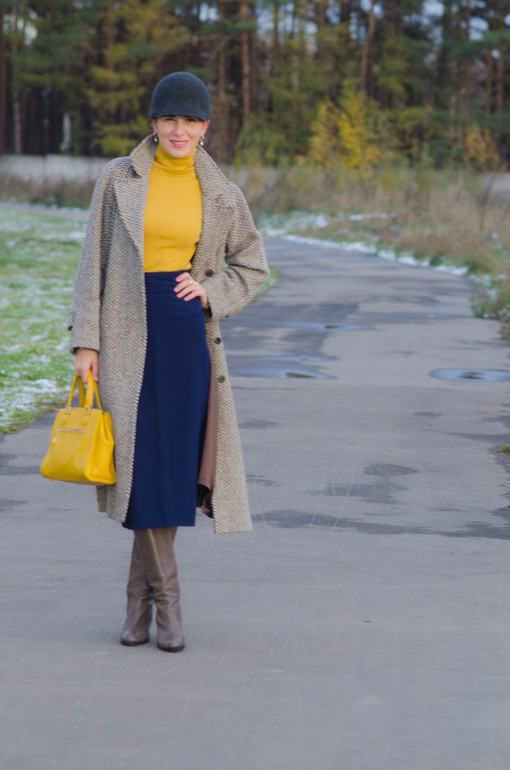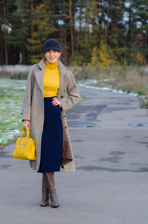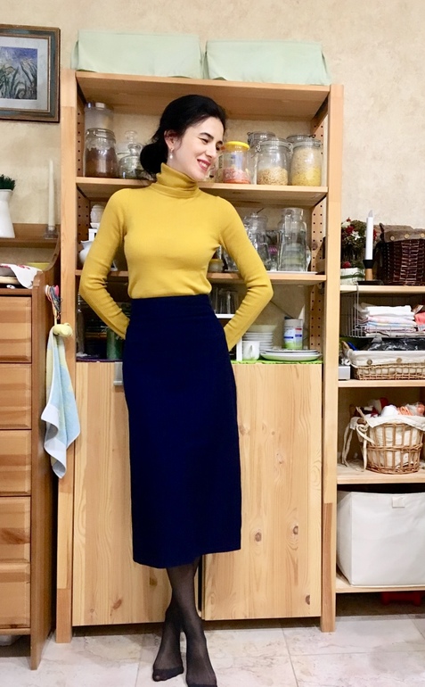 Водолазка из юникло, юбка синяя ( цвет не видно, как всегда) шила в ателье, тоже шерсть, ткань просто стон) Захотелось мне карандаш, но именно прям длииииинный, и с высокой талией. Под неё есть и пиджак, но вместе не ношу. Но если я, когда- нибудь вдруг стану судьёй😳🙈😂, то обязательно буду носить костюм целиком, и прикуплю себе под него высокие шпильки и строгий портфель). Тогда будет образ, что надо)))