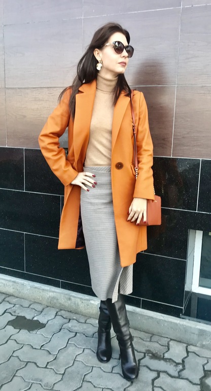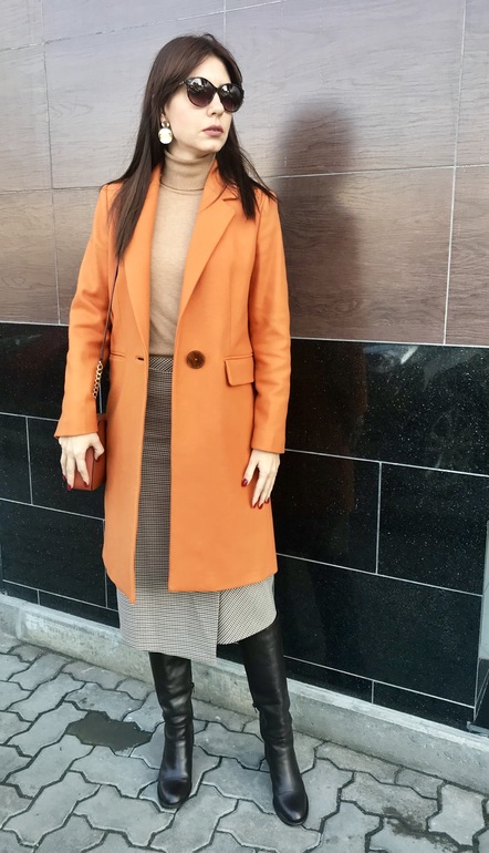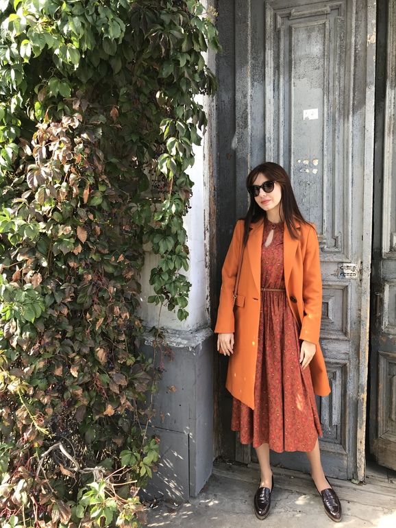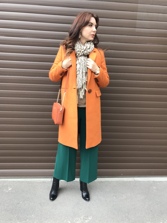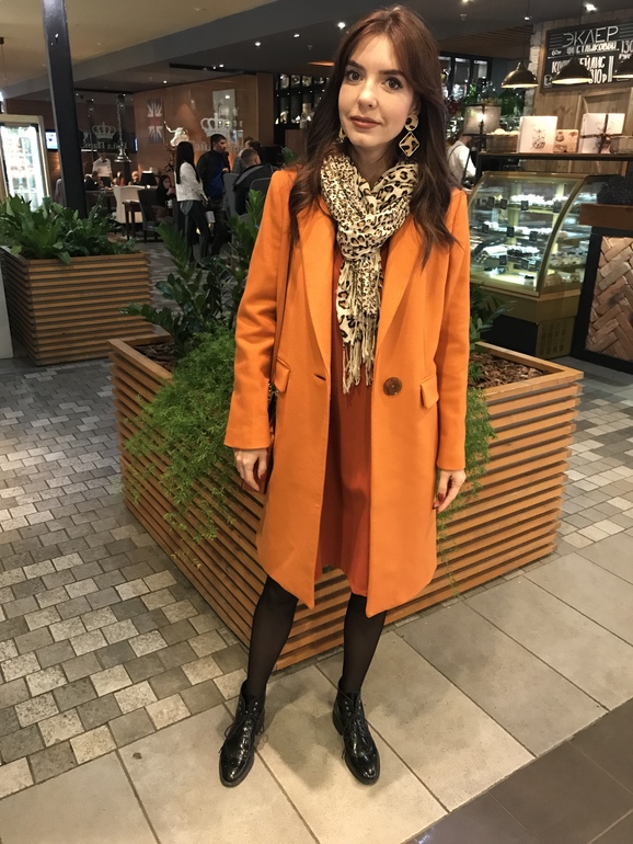 Одним из таких красочных приобретений стало оранжевое пальто Mango. Урвала его на распродаже, в составе 80 % шерсти, но оно не плотное.