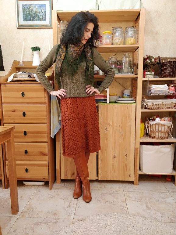 И покажу юбку с Али) Брала её под свой свитер с лисой. Ну с ним понятно, что хорошо получилось). Поэтому показываю с другим свитером)
