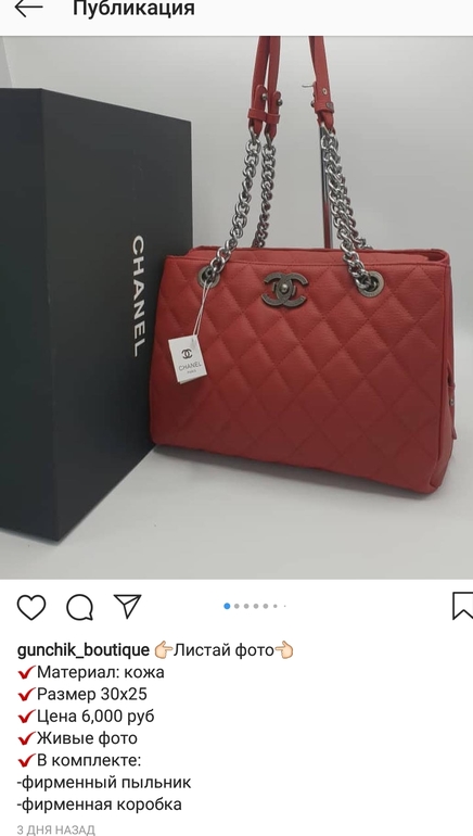 Все просто сумка от Шанель не может стоить 6 тыс у нас в Инстаграмме)) в любом случае всегда можно посмотреть на оф сайте того же Шанель где у них есть представители так скажем в рф. Но и это еще не дает 100% гарантии)))