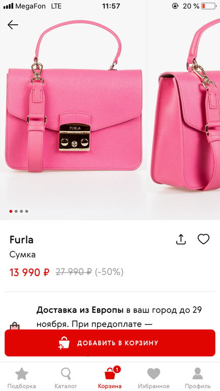 Аксессуарыя давно ищу себе Фурлу в коллекцию, но хочется чтобы супер скидка была) делюсь своими находками и скидками. Сначала Фурла с КупиВип, здесь скидка 10% по предоплате и 15% за заказ в мобильном приложении, буду писать цену со скидкой сразу: 1) размер 23*17, розовая 10492, чёрная 11092.