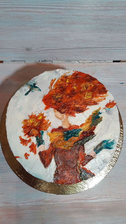 Мы торт в этом стиле рисовали в сентябре, сейчас фотку найду