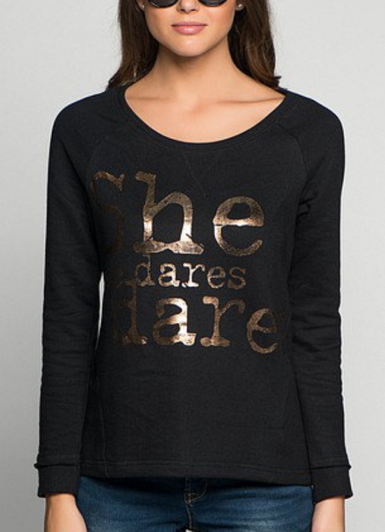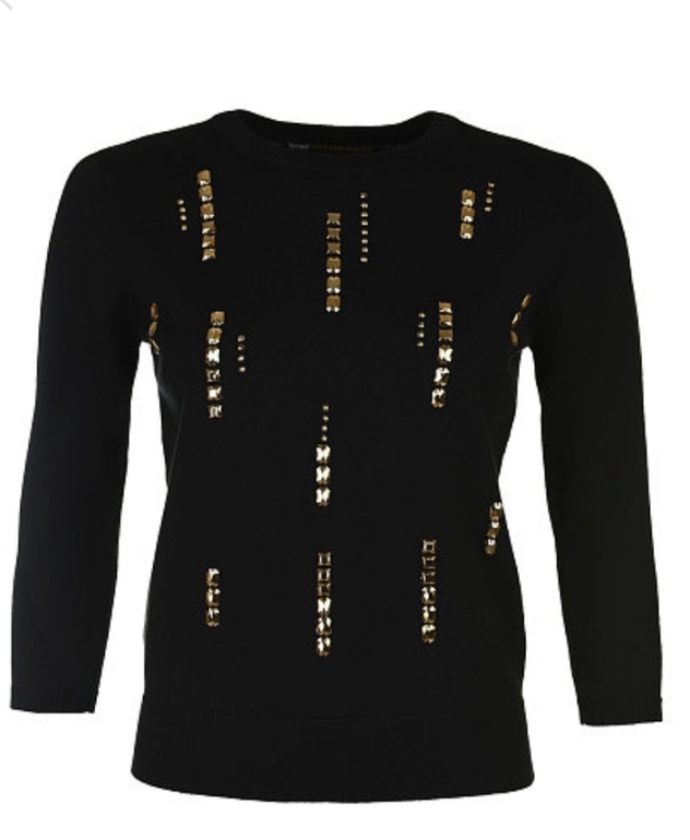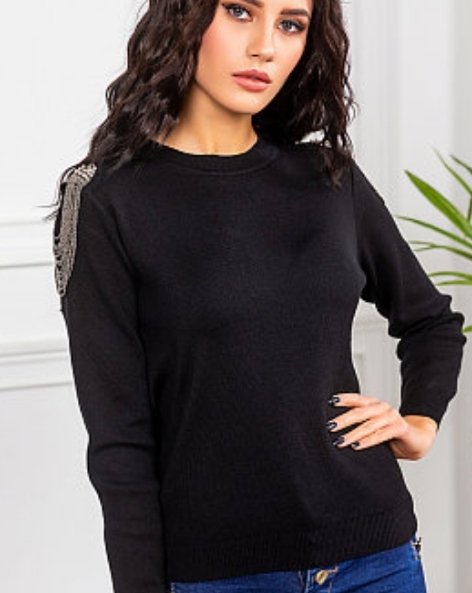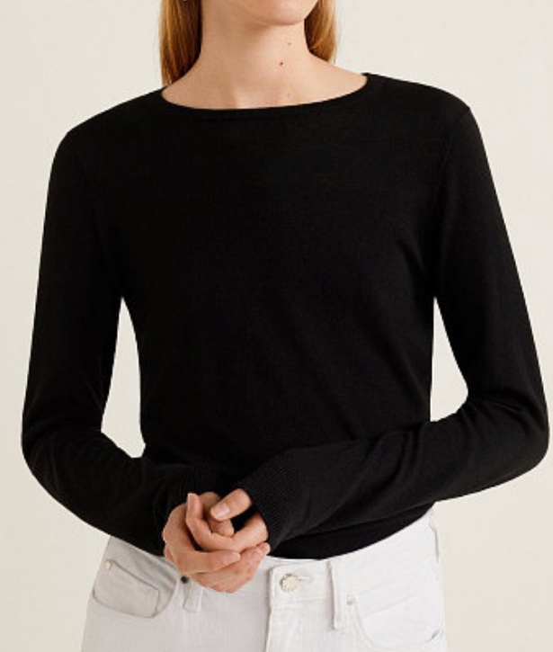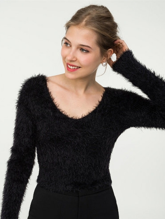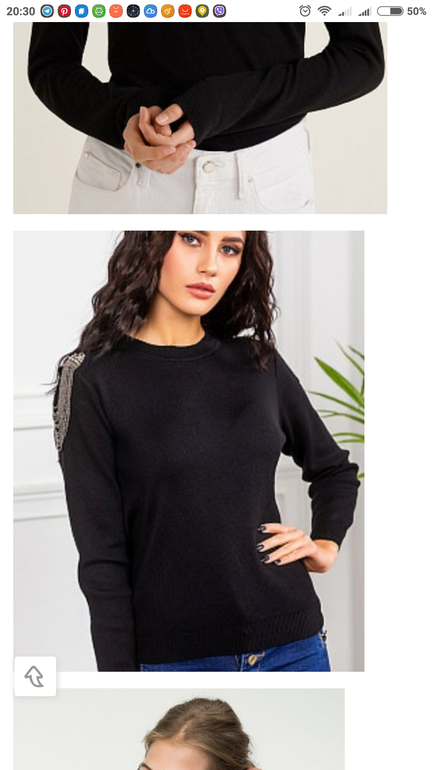 Чёрную блузу свободного кроя купите. А из того, что вы предлагаете-модно мохнатый свитер, но взять на пару размеров больше, чтоб был оверсайз