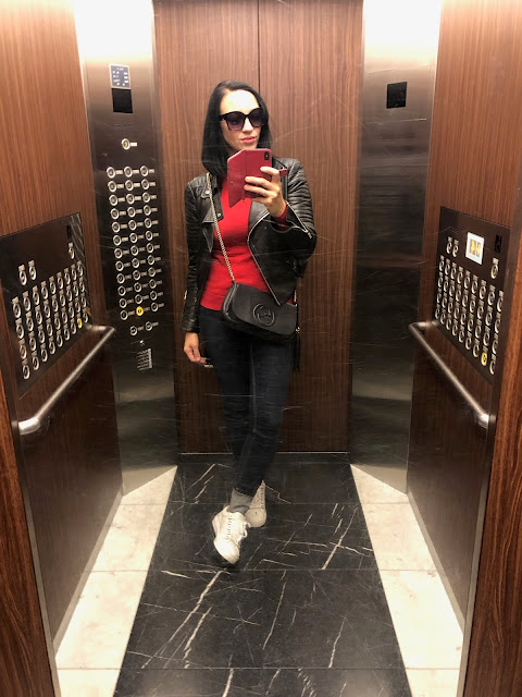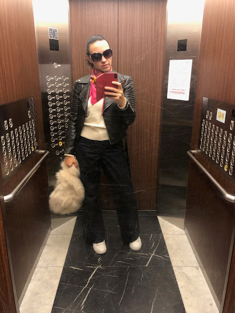 Мне юбочка понравилась, но совсе некуда ее носить, не в садик же детей провожать ))), да и холодно уже, так что я влезла в кожаные легинсы, угги и пуховик. Сосем желания нет о стиле думать.
