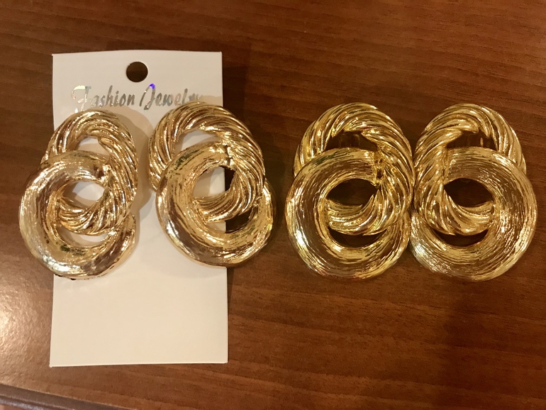 Тут вообще интересная история ) Правые на этом фото оригинал Зара, купила за 1700р., оказались клипсы, хотя на сайте писали серьги. Они такие достаточно тяжелые.