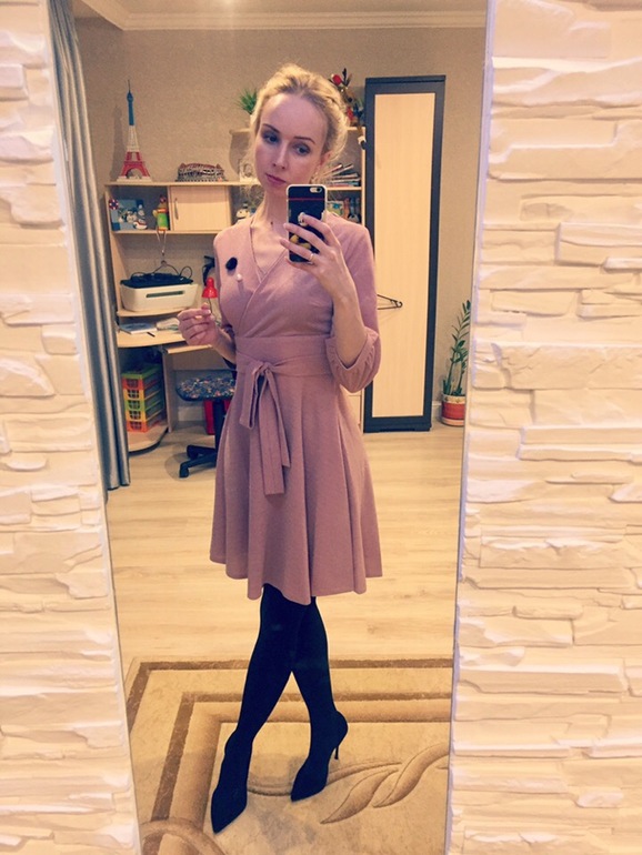 Ну сюда конечно же нужны нюдовые туфельки или ботильончики....Но если идете в черных туфлях, то только так как Вы сейчас оделись, если оденете другого цвета колготки просто порежите себя и свой рост. Хотя сочетание черный с розовым мне если честно не очень нравится, цвета абсолютно разные и по теплоте и по насыщенности... Но если других вариантов нет, то идите так...