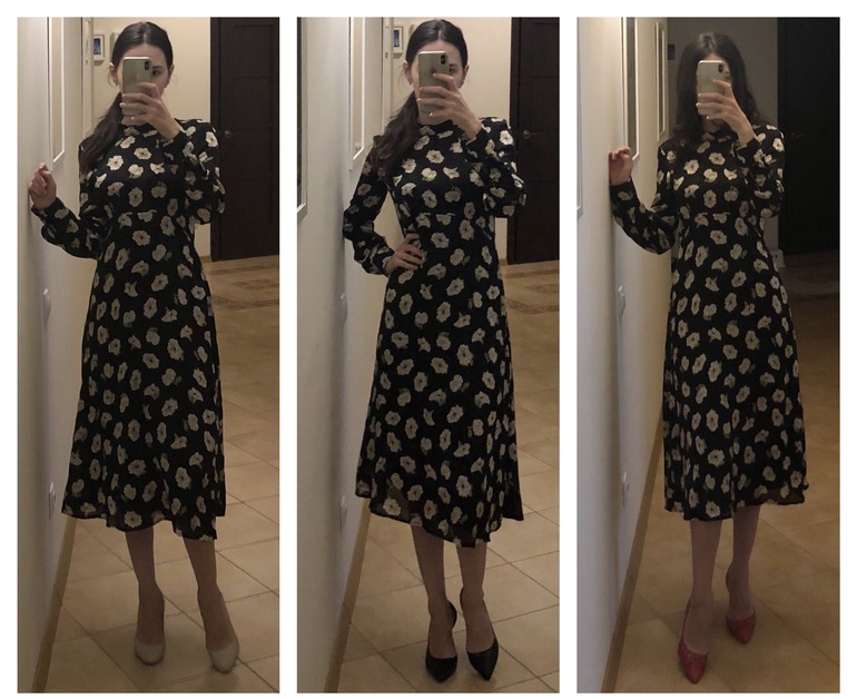 Черные однозначно. Светлые туфли простят образ, красные туфли просто не подходят