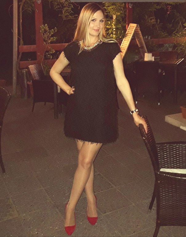 С коротким черным платьем только плотные черные колготки. Не прозрачные - это вообще вульгарщина! (Не забудьте помаду в тон туфлей, либо сережки, либо сумочку, либо очки с оправой в тон. Но не все сразу - конечно)
